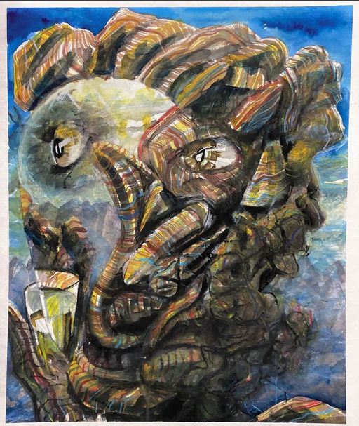 And the earth looked back, watercolour on paper, 55 x 43cm, 2021