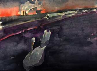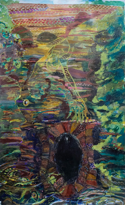 These mixed-media works are drawn outside my boat studio - the canal becomes both subject and metaphor: a place of shimmer and squalor, myth and mess. The series culminates in The Navvy Cut, a nearly three-metre-long painting created for Canal Boat Contemporary’s cabinet, a work that sought to hold these contradictions in a single frame.